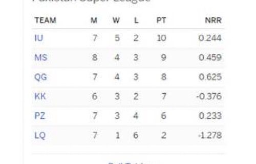 تفصیلات کے مطابق اسلام آباد یونائیٹڈ 8 پوائنٹس کے ساتھ تیسرے نمبر پر براجمان تھی جبکہ پہلے نمبر پر ملتان سلطان قبضہ جمائے ہوئے تھی لیکن آج کے میچ نے اسلام آباد یونائیٹڈ کو سیدھے پہلے نمبر پر پہنچا دیا ہے ، اسلام آباد یونائیٹڈ نے 7 میچ کھیلے ہیں اور 5 میں کامیابی کے ساتھ پہلے نمبر پر موجود ہے ۔ ملتان سلطانز اس وقت اپنے 8 میچ کھیل چکی ہے اور اس میں سے 3 میں شکست کا سامنا کرنا پڑا جبکہ 4 میں کامیابی ملی تاہم ایک میچ بارش کے باعث منسوخ ہوا جس کے باعث نہیں ایک پوائنٹ اضافی ملا ۔لاہور کوئٹہ گلیڈی ایٹرز آج کی صورتحال کے بعد دوسرے سے تیسرے نمبر پر آ گئی ہے ،انہوں نے اب تک 7 میچوں میں سے چار میں کامیابی سمیٹی جبکہ تین میں شکست حصے میں آئی ۔پشاور زلمی دوڑ میں پیچھے رہتی ہوئی نظر آ رہی ہے کیونکہ وہ اب تک 7 میچوں میں سے صرف تین میں کامیابی سمیٹ سکی ہے جبکہ چار میچز میں شکست کا سامنا کرنا پڑا ۔