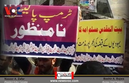 الحدیث یوتھ فورس کے زیر اہتمام مقبوعہ بیت المقدس کو اسرائیلی دارالحکومت بنانے کے امریکی صدر ٹرمپ کے اعلان پر احتجاجی مظاہرہ کیا ( بیورو