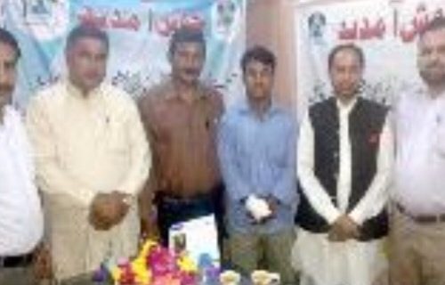 کراچی ایکشن کمیٹی کے افتتاح پر گوجرانوالہ کے صدر بشیر باجوہ اور کینیڈا کے ایمبیڈر نصیر اے ظفر کی طرف سے مبارک باد پیش کرتے ہیں