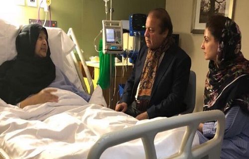 نواز شریف، مریم نواز اور نواسی کے ہمراہ لندن پہنچ گئے، لندن پہنچتے ہی نواز شریف اور مریم نوازنے اسپتال میں بیگم کلثوم نواز کی عیادت کی۔