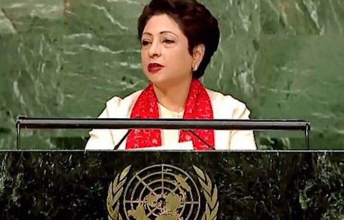اقوام متحدہ میں پاکستان کی مستقل مندوب ملیحہ لودھی نے جنرل اسمبلی سے سشما سوراج کی تقریرکے جواب میں خطاب کرتے ہوئے کہا کہ عالمی برادری بھارت کوسیزفائرکی خلاف ورزی سے روکے، بھارت جنوبی ایشیا میں دہشت گردی کی ماں ہے، کلبھوشن یادیو نے پاکستان میں دہشتگردی کا اعتراف کیا، بھارتی حکمران جماعت کے ہاتھ خون سے رنگے ہوئے ہیں، نریندرمودی گجرات میں مسلمانوں کے قتل عام میں ملوث رہا، بھارت میں کوئی بھی اقلیت محفوظ نہیں، بھارت دہشتگردی کوریاستی ہتھکنڈے کے طورپراستعمال کرتا ہے جب کہ بھارت کومذاکرات کیلیے دہشت گردپالیسی ترک کرنا ہوگی۔