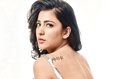 اداکارہ شروتی ہاسن نے میڈیا سے گفتگو میں کہا کہ انھوں نے جسم کے پانچ اعضاء جس میں پاؤں، کان، گردن، بازو اورکلائی شامل ہیں پر تامل زبان میں جو کہ ان کی مادری زبان ہے ٹیٹو کھدوائے ہیں جس پر پشیمانی ہے کیونکہ وہ اداکارہ ہیں انھیں ہر طرح کا کردار نبھانا ہوتا ہے، اس لیے بھاری میک اپ سے وہ ان ٹیٹوز کو چھپاتی ہیں۔
