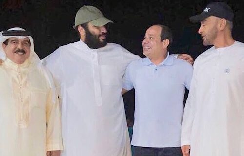 سعودی جریدے کے مطابق تصویرمیں ولی عہدشہزادہ محمدبن سلمان،مصرکےصدر،بحرین کےشاہ اوریواےای کےولی عہدہیں۔