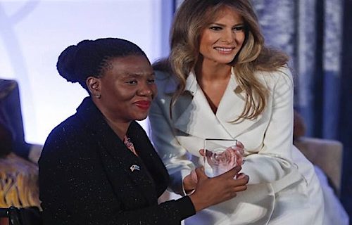 ملانیا ٹرمپ نے دنیا بھر سے تقریب میں شامل ہونے والی 12خواتین میں ایوارڈز بھی تقسیم کیے جبکہ ایوارڈحاصل کرنے والوں میں یمن اور شام سے آنے والی 2خواتین بھی شامل تھیں۔