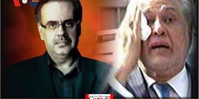 وزیرخزانہ اسحاق ڈار آج عدالت میں جج کے سامنے رو پڑے۔ پاکستان کے سینئر صحافی اور تجزیہ کار ڈاکٹر شاہد مسعودکا اپنے پروگرام میں موجودہ سیاسی صورتحال اور آج اسحاق ڈار کی ہونے والی پیشی کے بارے میں بات کرتے ہوئے کہنا تھا کہ آج وزیرخزانہ اسحاق ڈار پر جب عدالت میں فرد جرم عائد کی گئی یعنی جب انہیں عدالت میں فرد جرم عائد کرنے کا حکم سنایا جارہا تھا تب وزیر خزانہ اسحاق ڈار جج کے سامنے روپڑے اور دو سے تین بار اپنے آنسو بھی پونچے۔