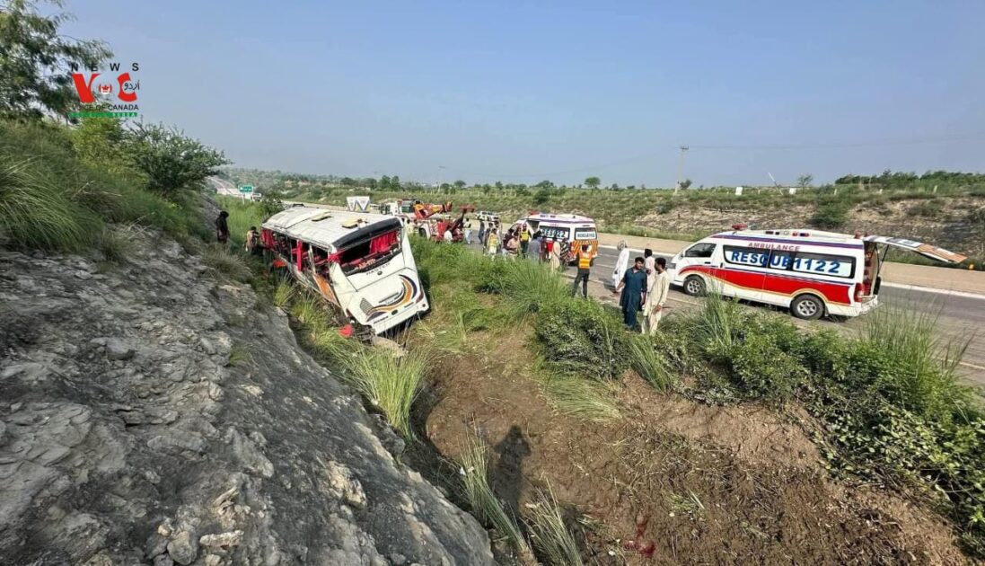 موٹروے پر المناک حادثہ: مسافر بس کھائی میں جا گری، 8 افراد جاں بحق، 18 زخمی