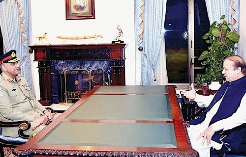 اسلام آباد میں وزیراعظم نوازشریف سے آرمی چیف جنرل قمرجاوید باجوہ نے ملاقات کی جس میں ملکی سلامتی اورسرحدی صورتحال پربات چیت ہوئی۔ ملاقات کے دوران پاک فوج کی پیشہ ورانہ تیاریوں سے متعلق تبادلہ خیال اورباہمی دلچسپی کے امورپربھی بات چیت کی گئی۔ اس کے علاوہ دہشت گردوں کے خلاف ملک بھرمیں جاری آپریشن رد الفساد سمیت کراچی کی صورتحال کا جائزہ بھی لیا گیا۔