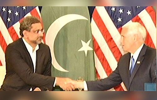 اقوام متحدہ کی جنرل اسمبلی میں شرکت کے لیے نیویارک میں موجود وزیراعظم شاہدخاقان عباسی نے امریکی نائب صدرمائیک پنس سے ملاقات کی جس میں اقوام متحدہ میں پاکستان کی مستقل مندوب ملیحہ لودھی، وزیرخارجہ خواجہ آصف، سیکریٹری خارجہ تہمینہ جنجوعہ اور امریکا میں پاکستانی سفیر اعزاز چوہدری اور فواد حسن فواد بھی موجود تھے۔ امریکی نائب صدرمائیک پنس نے شاہدخاقان عباسی کی آمد پرشکریہ اداکیا۔