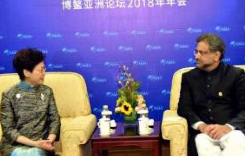 وزیر اعظم شاہد خاقان عباسی اور ہانگ کانگ کی چیف ایگزیکٹو کی ملاقات