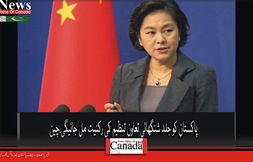 چینی وزارت خارجہ کی ترجمان ہوا چھون اینگ نے کہا ہے کہ آئندہ ہفتیقازقستان میں ہونے والے شنگھائی تعاون تنظیم کے اجلاس میں تنظیم کے ریاستی ممبران کی جانب سے پاک بھارت کو تنظیم کا مستقل رکن بنانے کیلئے تمام معاملات احسن طریقہ سے طے کر لئے گئے ہیں ۔ ہمیں امید ہے کہ پاک بھارت دونوں آستانہ میں منعقدہ اجلاس میں تنظیم کے مستقل رکن کا درجہ حاصل کر لیں گے ۔ واضح رہے کہ ان دونوں ممالک سے پہلے چین ،روس ، قازقستان، ازبکستان ، تاجکستان اور کرغزستان تنظیم مستقل ارکان ہیں جبکہ افغانستان ، بیلاروس، بھارت ، ایران منگولیا اور پاکستان آبزرور رکن کا درجہ رکھتے ہیں ۔