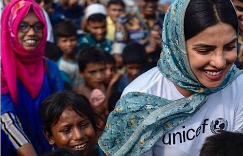 اقوام متحدہ کی تنظیم یونیسیف کی جذبہ خیر سگالی کی سفیر پریانکا چوپڑہ نے بنگلہ دیش کے پناہ گزین کیمپوں میں بدحال زندگی گزارتے روہنگیا مسلمانوں اور ان کے بچوں سے ملاقات کی۔