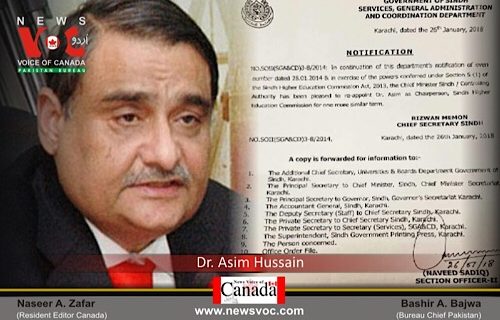 ڈاکٹر عاصم حسین دوبارہ سندھ ہائر ایجوکیشن کمیشن کے چیئرمین مقرر