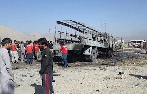 پولیس کا کہنا ہے کہ پولیس کے ٹرک میں 35 سے زائد اہلکارسوارتھے، شہرکے سول اسپتال میں ایمرجنسی نافذ کردی گئی ہے اورطبی عملہ الرٹ ہے۔ پولیس اورایف سی نے دھماکےکی جگہ کو گھیرے میں لے کر آپریشن شروع کردیا اور علاقے میں سیکیورٹی کو ہائی الرٹ کردیا گیا ہے۔