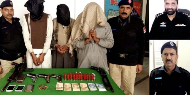کر کے ان کے قبضہ سے لوٹے گئے ایک لاکھ روپے،چار موبائل فون اور واردات میں ا ستعمال ہونے والا اسلحہ ایک بندوق اور تین پسٹل برآمد کئے ہیں ۔گرفتار کئے گئے ملزمان میں اکبرعرف اکبری (سرغنہ)، وکیل ساکنان موسیٰ پور اور لیاقت علی سکنہ بورے والا شامل ہیں ۔تفصیلات کے مطابق رواں سال انیس جنوری کو نامعلوم مسلح ملزمان نے سیم پلی کوٹ حنیف کے قریب مسمی عمیر اور محمد اسلم جب کہ دوسری واردات میں بوتالہ شرم سنگھ کنٹرول شیڈ کے قریب ندیم عباس سکنہ حمید کلاں کواسلحہ کے زور پر روک کر ان سے نقدی، موبائل فونز و دیگر قیمتی اشیاء لوٹ کر فرار ہو گئے ۔ مزاحمت پر ملزمان نے فائرنگ کر کے عمیر اور اسلم کو مضروب کر دیا ۔ دونوں وقوعہ جات کے ملزمان کی گرفتاری کے لئے سٹی پولیس آفیسر