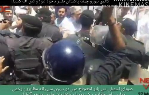 نیوز وی او سی مظاہرین کے درمیان ہاتھا پائ جاری ۔متعدد گرفتار ۔۔صوبائی اسمبلی کےباہر احتجاج میں دو درجن سے زائد مظاہرین زخمی ۔پولیس