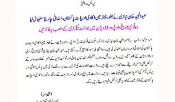 PAKISTAN ACADEMY OF LETTERS PRESS RELEASE Islamabad (P.R). Mr. Abdul Majeed Khan Niazi, assumed additional charge of the post of Chairman Pakistan Academy of Letters. ..مزید پڑھیں