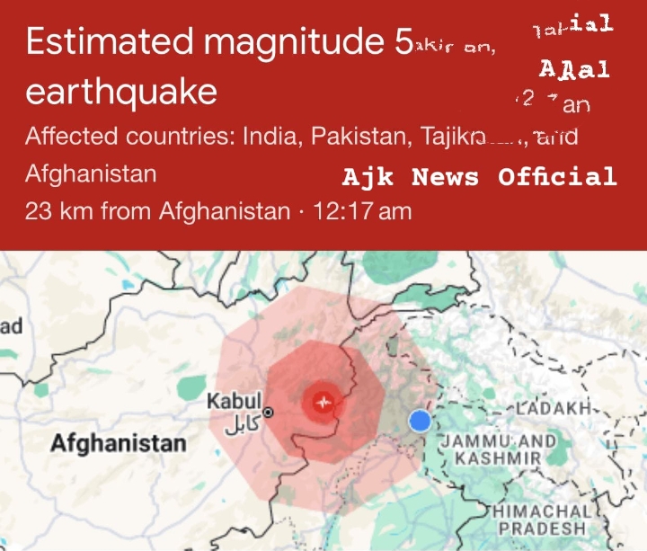 انٹرنیشنل، نیوز ڈیسک کابل، افغانستان افغانستان میں 5.4 شدت کا زلزلہ، پاکستان سمیت خطے میں جھٹکے محسوس رات 12 بج کر 17 منٹ پر افغانستان ..مزید پڑھیں