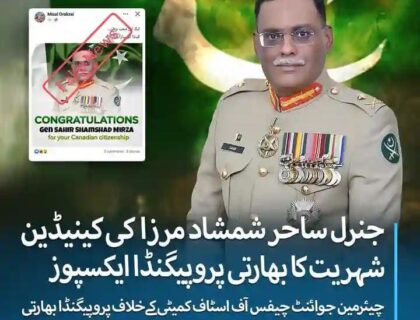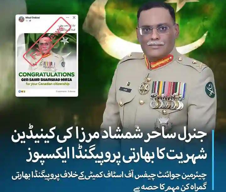 : سائبر سیکیورٹی ڈیسک : اسلام آباد، پاکستان جنرل ساحر شمشاد مرزا کی کینیڈین شہریت کی خبر جعلی قرار، بھارتی پروپیگنڈا بے نقاب سوشل میڈیا ..مزید پڑھیں